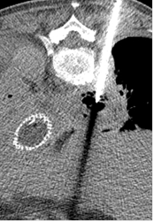 drainage sous scanner d’un abcès médiastinal postérieur droit.